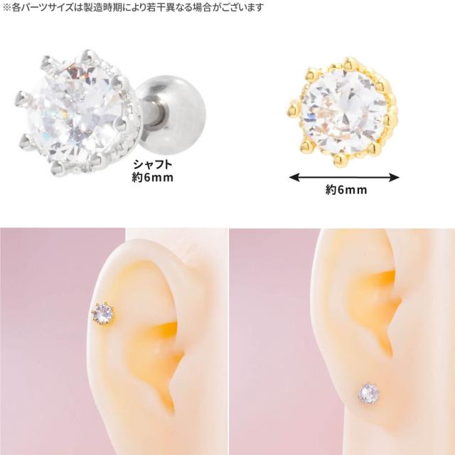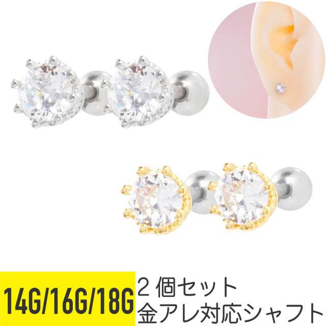 2個セット クラウン ベゼル ジュエル ストレートバーベル 14G 16G 18G サージカルステンレス ヘリックス 軟骨ピアス ボディピアス