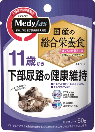 ペットライン【ペット用品】メディファス ウェット 11歳から まぐろと若鶏ささみ 50g P-4902418880938【MFW-81】