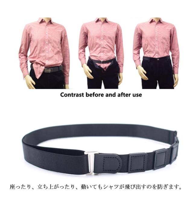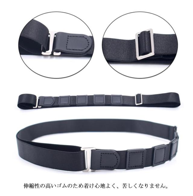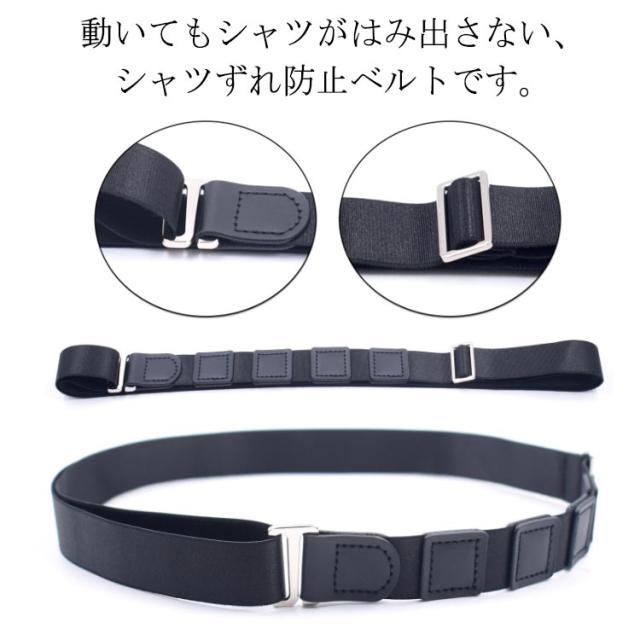 シャツずれ防止ベルト シャツステイ すべり止め はみ出し防止 シワ伸ばし 調節可能 着脱簡単 伸縮性 メンズ レディース 男女兼用 通学 通勤 ビジネス 結婚式 卒業式 入学式 無地 ブラック