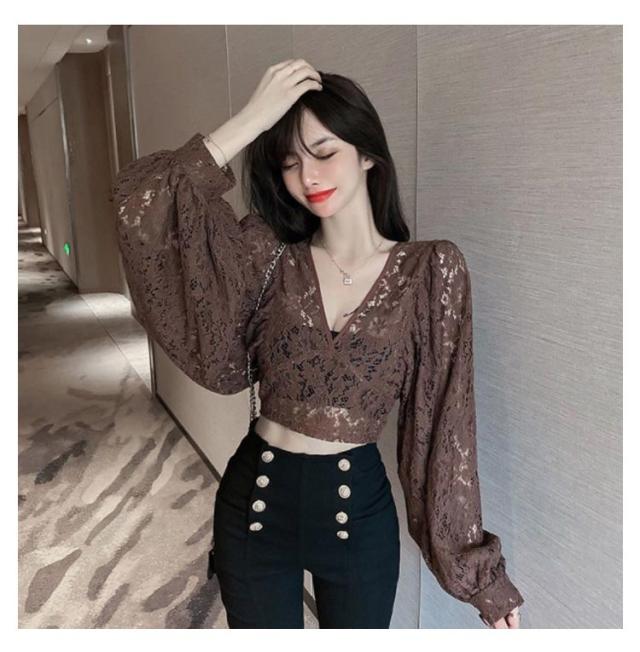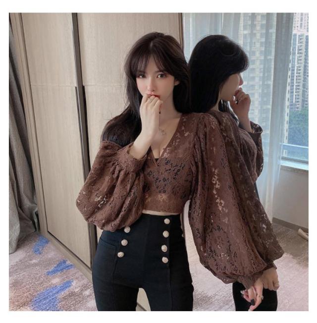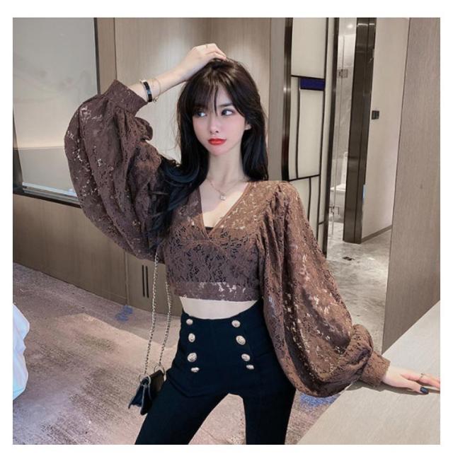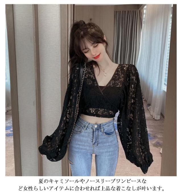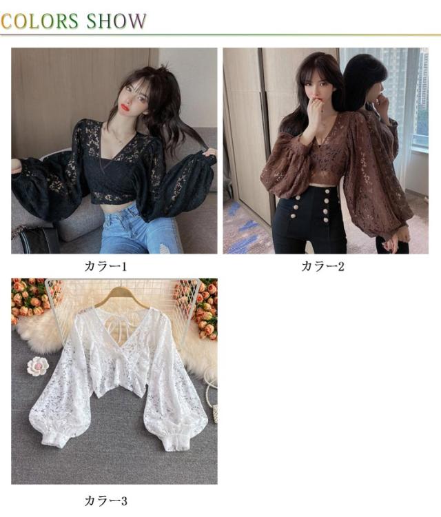 レース ブラウス レディース レーストップス シャツ ブラウス Vネック シースルー 長袖 ボリューム袖 花柄 レース 総レース エレガント 大きいサイズ 春 夏 レイヤード風 シャツブラウス S M L