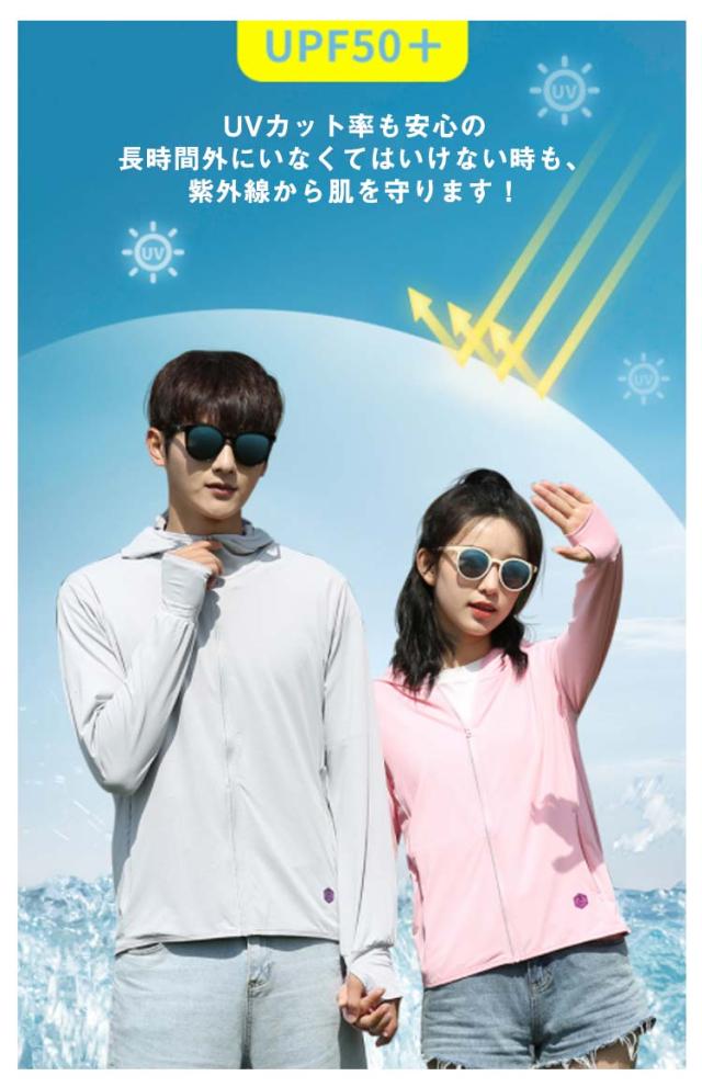 パーカー 指穴 uvカット パーカー サンバイザー 接触冷感 UV ジップアップ ラッシュガード レディース フード付き 首元 UPF50+ ひんやり メンズ 日焼け止め 軽量 長袖 春 夏 秋 薄手 吸水速乾 送料無料 父の日 プレゼント 母の日 ギフト 送料無料 S M L XL 2XL 3XL