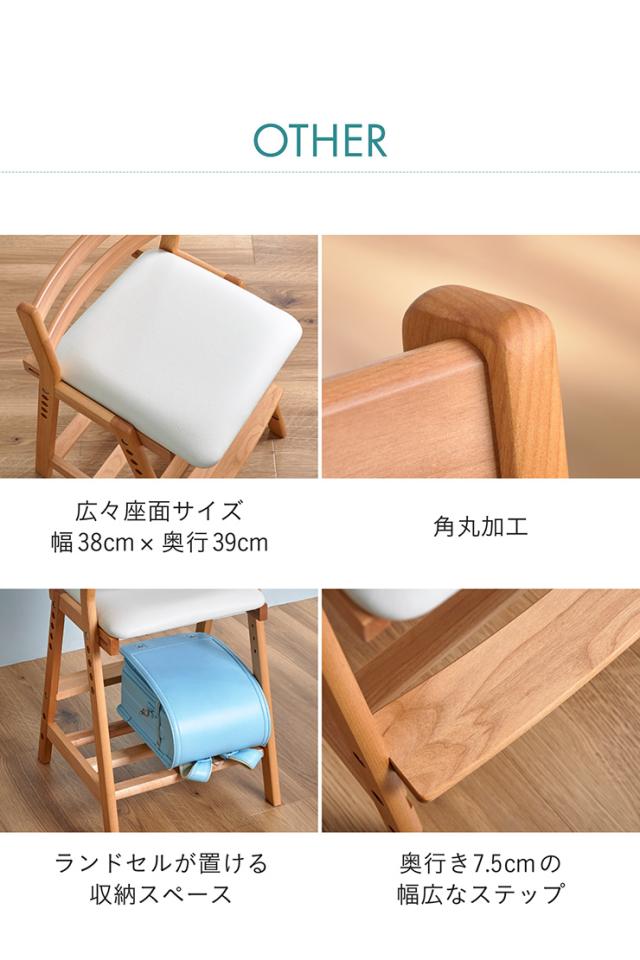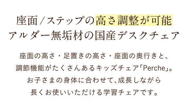 国産 完成品 アルダー無垢材使用 学習椅子 学習チェア Perche Chair(ペルケチェア) PVC 勉強椅子 勉強チェア 昇降チェア 木製チェア 木製椅子 学習イス 学習いす 子供 中学生 高校生 大学生 おしゃれ 堀田木工所