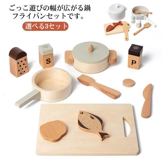 鍋 男の子 なべ&フライパンセット 玩具 木製 おままごと 女の子 誕生日 おもちゃセット 出産祝い こども キッズ 知育玩具 幼児 室内 キッチン プレゼント お祝い 遊び