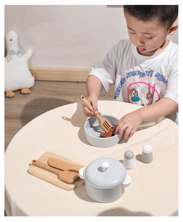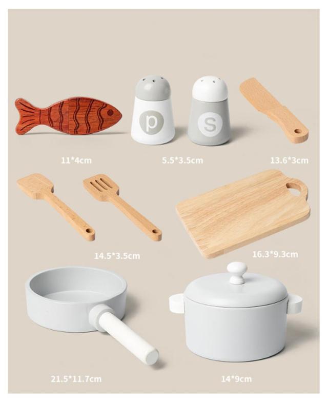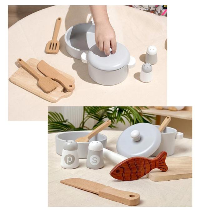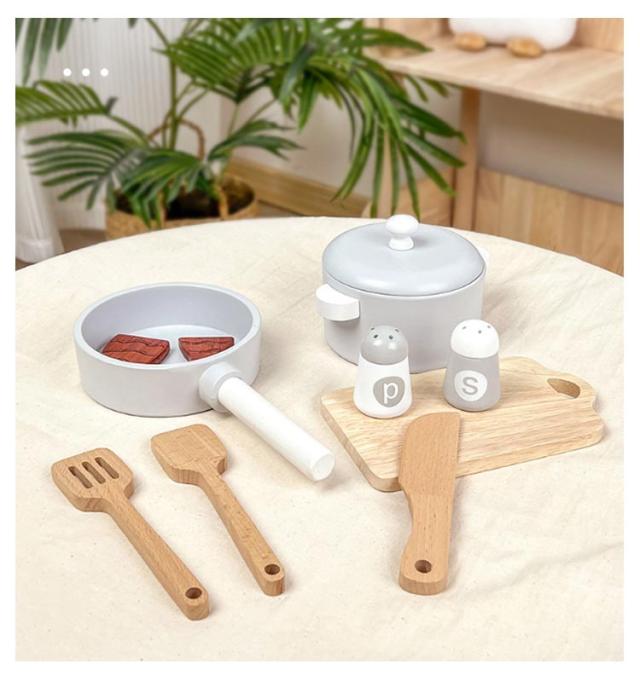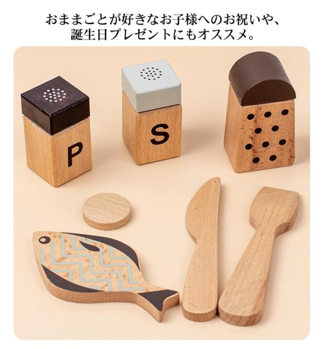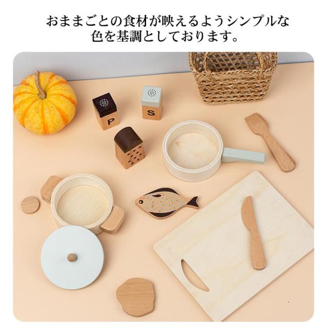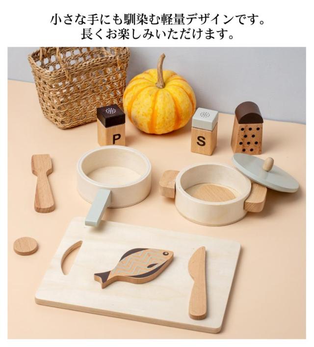| ・ごっこ遊びの幅が広がる鍋フライパンセットです。 ・シックでおしゃれな木製のキッチンツールセット。 ・おままごとの食材が映えるようシンプルな色を基調としております。 ・小さな手にも馴染む軽量デザインです。長くお楽しみいただけます。 ・おままごとが好きなお子様へのお祝いや、誕生日プレゼントにもオススメ。 | |