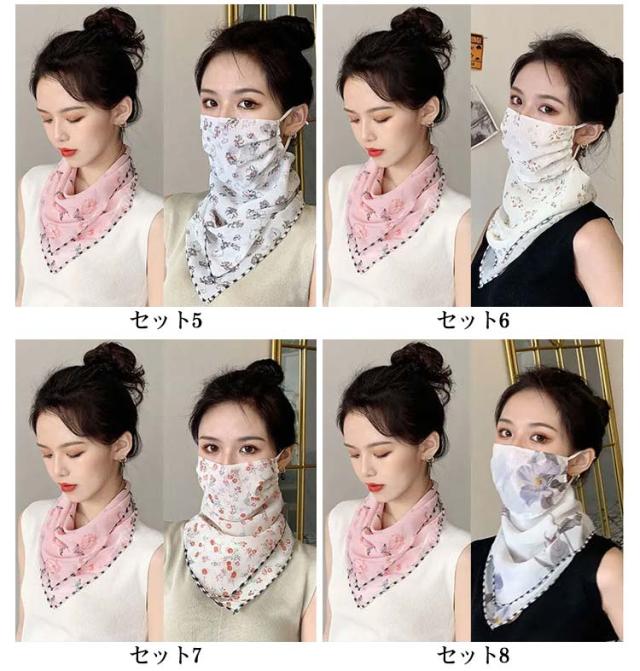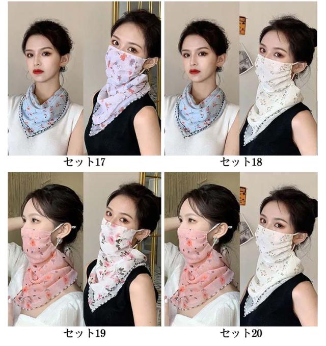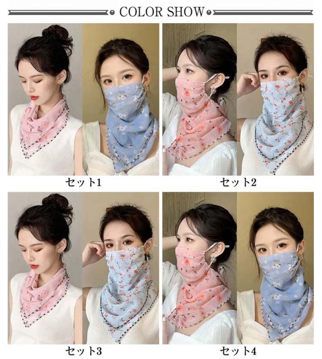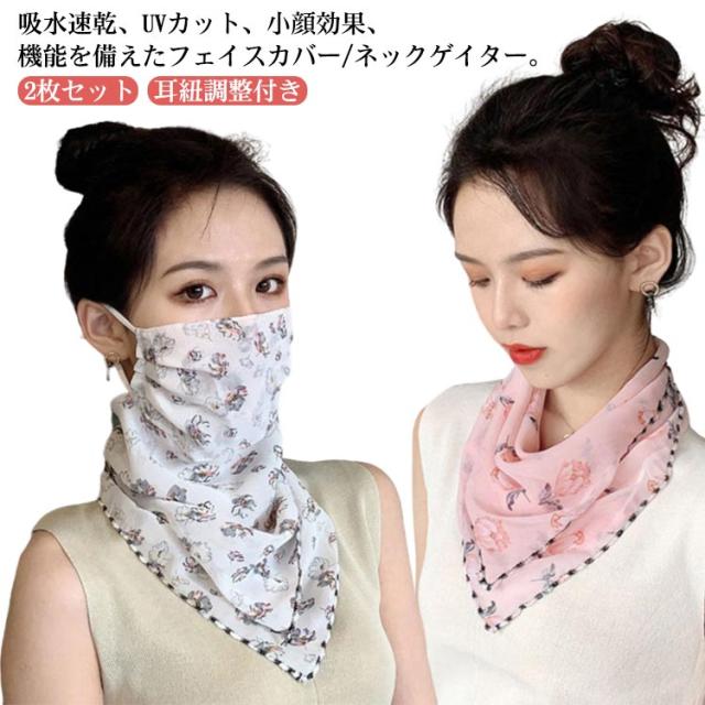 フェイスマスク 日焼け防止 UV ネックカバー 耳掛け マスク 2枚セット フェイスカバー uvカット UVカット 接触冷感 首ガード 総柄 ネックゲイター 小顔効果 洗える 通気性 息苦しくない 吸汗速乾 紫外線対策 耳紐調整付き 花柄 日よけ