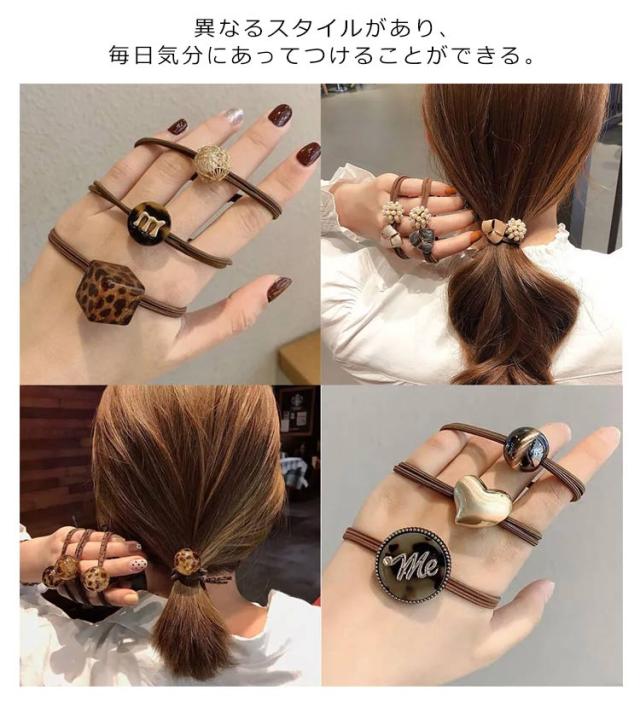 ポニーテール くすみカラー セット】ヘアアクセサリー セット ハート 10点 ヘアゴム ビーズ 送料無料 ヘアゴム 英字 大人っぽい 母の日 シンプル レディース 韓国 春 夏 秋オフィス オシャレ 【ヘアゴム