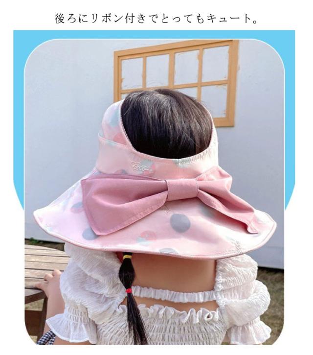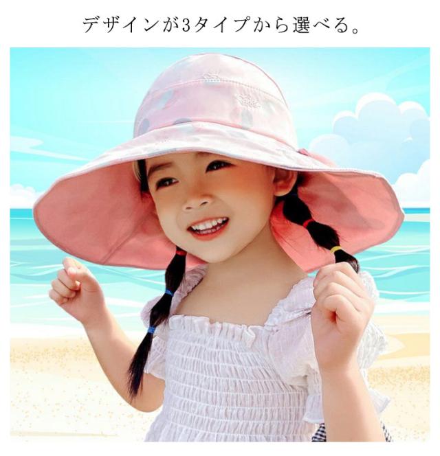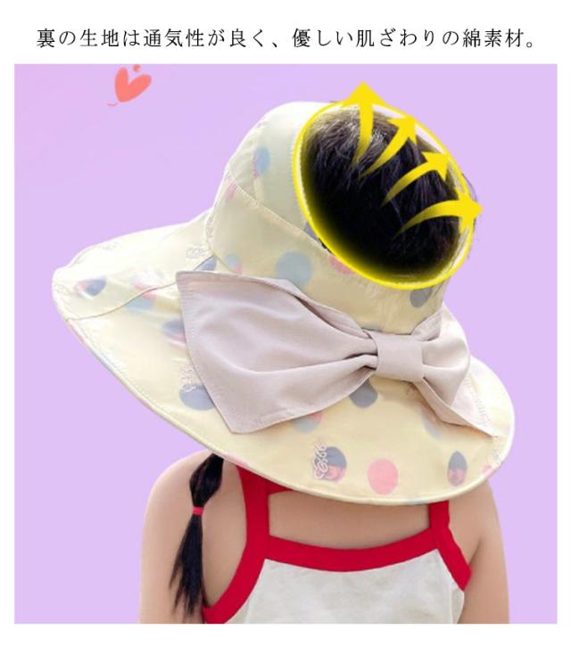 日よけ帽子 UV対策 UVカット 3タイプ リボン ハット 女子 キッズ 帽子 あご紐付き UPF50+ ベビー 子供帽子 ガーリー サンハット かわいい 日よけ 花 女の子 可愛い 子供 お洒落 おしゃれ ピンク パープル アイボリー 送料無料 つば付き 日除けリボン