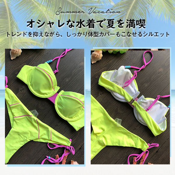水着 レディース 2点セット ビキニ水着 ホルター 可愛い 体型カバー セパレート 短パン水着 スイムウェア ネックトップス 小胸バンドゥ 夏 海