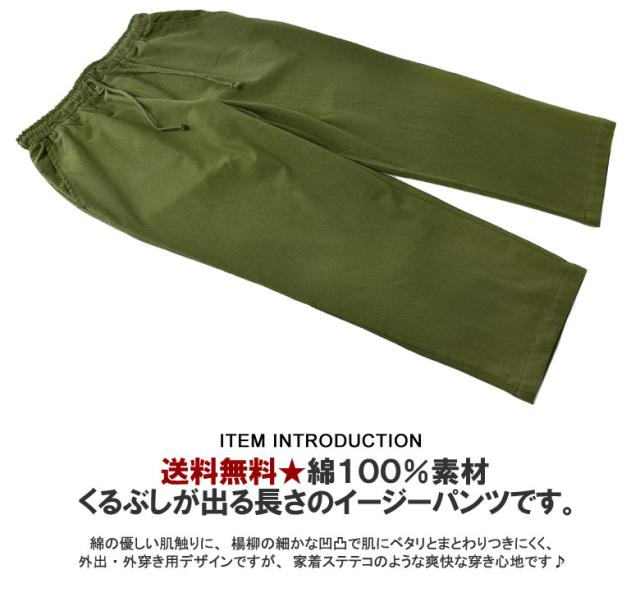 送料無料☆綿100%素材くるぶしが出る長さのイージーパンツです。