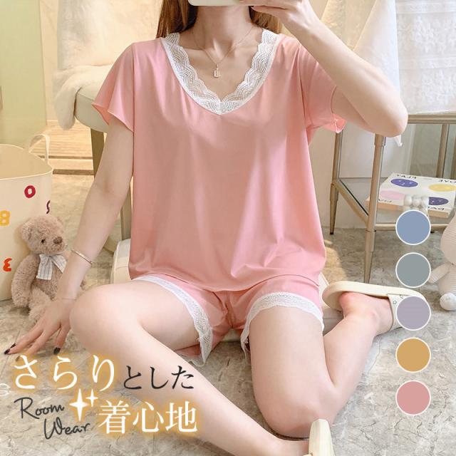 パジャマ 半袖 ルームウェア レディース ショートパンツ 涼しい 部屋着 上下セット 春夏 可愛い 柔らかい 女性 部屋着 寝間着