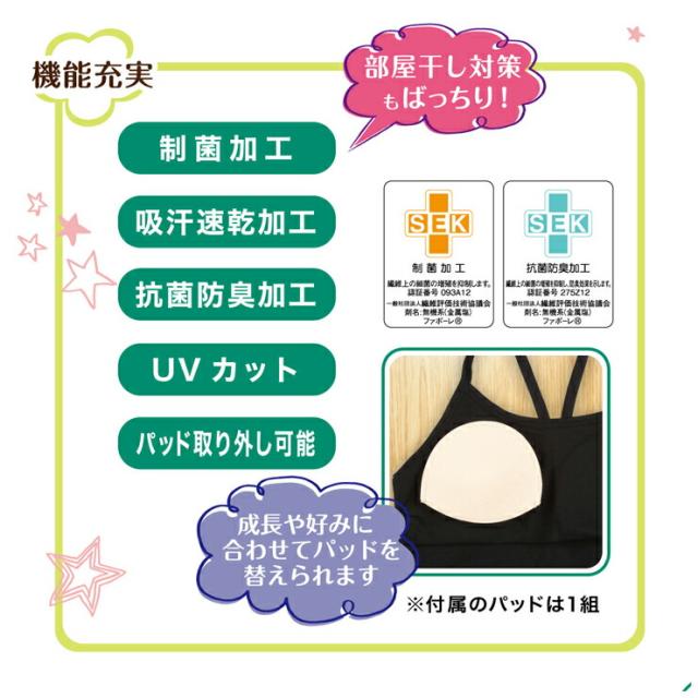 ジュニア アツギ キャミソール ステップフィット 50118CS 綿混 カップ付き 制菌加工 取り外しパット付 STEPFIT 抗菌 防臭 ブラキャミ スポブラ atsugi キッズ 子供 下着 肌着 インナー(05503)
