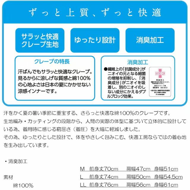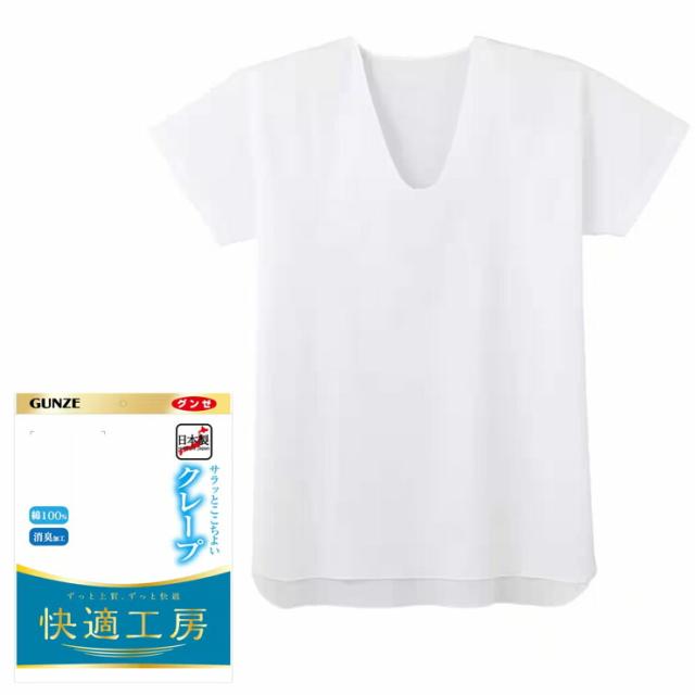 メンズ インナー 綿クレープ 半袖 U首 シャツ KQ6516 グンゼ 快適工房 男性 肌着 夏 涼しい 白 単品 (05628)