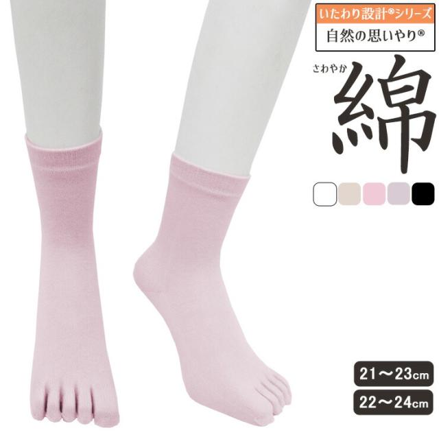 5本指ソックス レディース いたわり設計 さわやか 綿 日本製 51-840S 51-840M 単品 婦人靴下 5本指靴下 綿混 コットン 冷え性対策 ニオイ対策(05535)