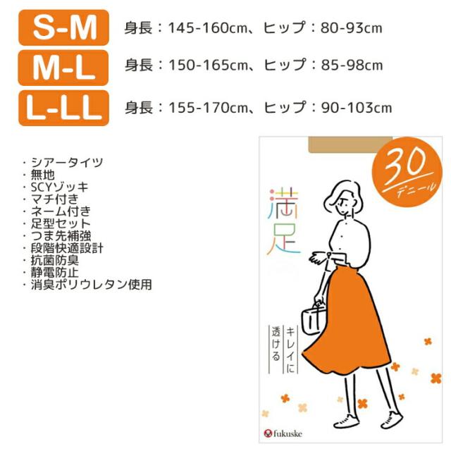 福助 ストッキング 満足 New 30デニール 540-1101 単品 満足 ストッキング 福助 満足 フクスケ パンスト パンティストッキング シアータイツ 抗菌 防臭 fukusuke (05651)