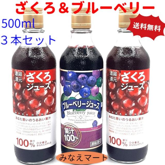 ざくろ&ブルーベリー 果汁100% ジュースセット (ざくろジュース 500ml×2本)(ブルーベリージュース 500ml×1本) 送料無料 フルーツジュース 贈り物 ギフト