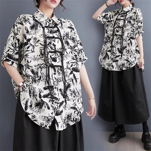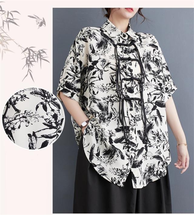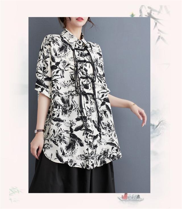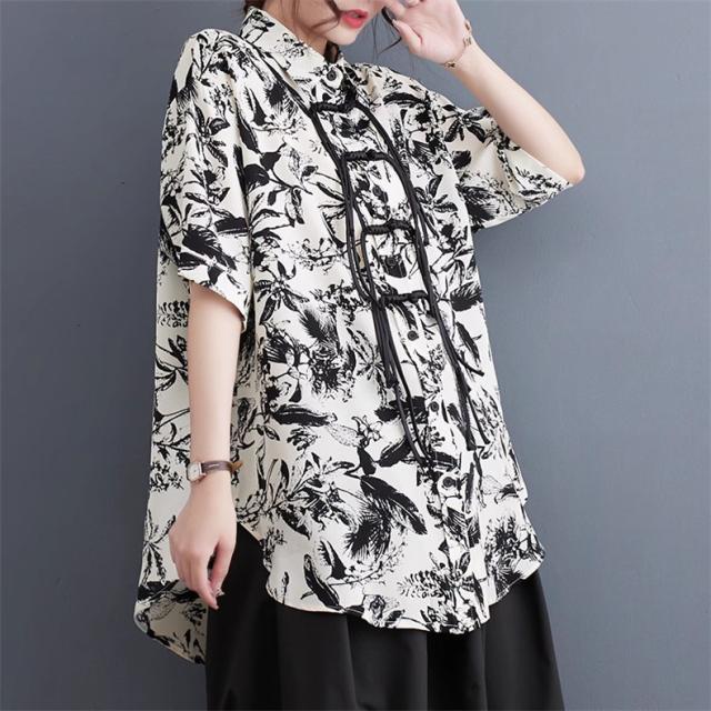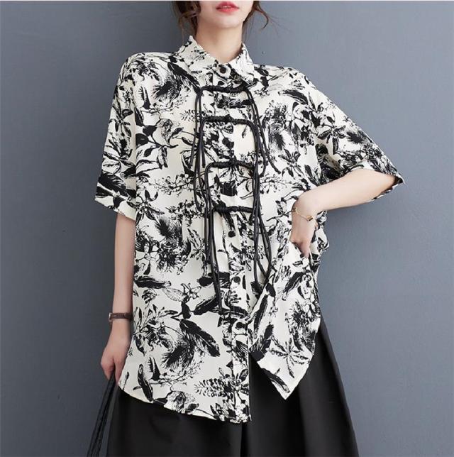 シャツ 新作 手作りボタン レトロ風 花柄 トップス レディース ゆったりシルエット カジュアル 色んなコーディネイトを楽しめる