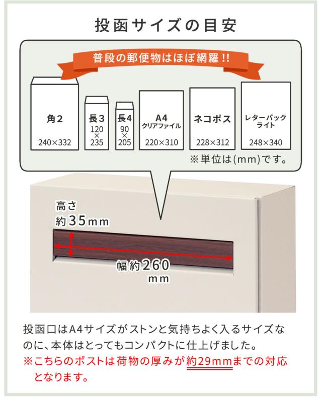 投函口:幅260×高さ35mm