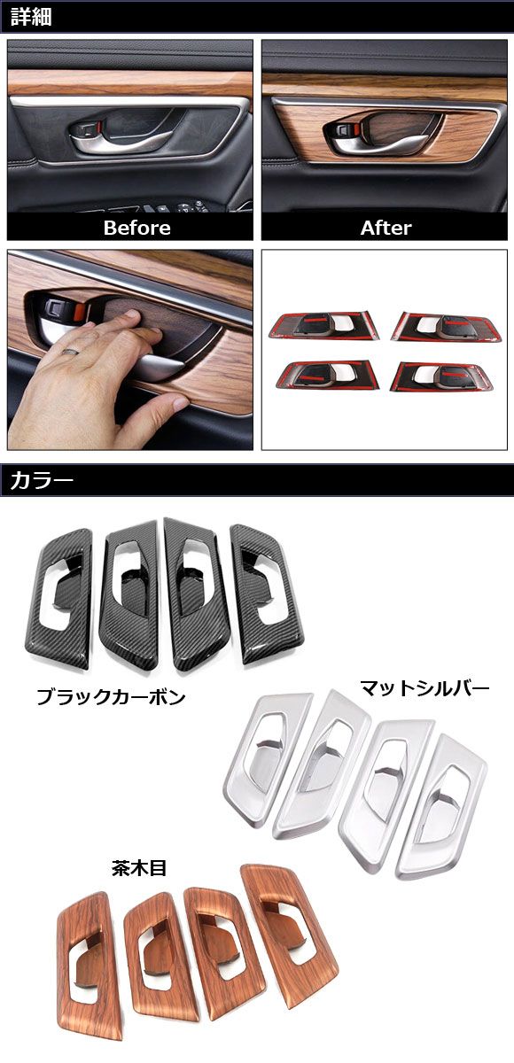 インナードアハンドルカバー ホンダ CR-V RW1/RW2/RT5/RT6 ハイブリッド可 2018年08月〜2022年12月 ブラックカーボン ABS製 入数:1セット(4個) AP-IT2765-BKC