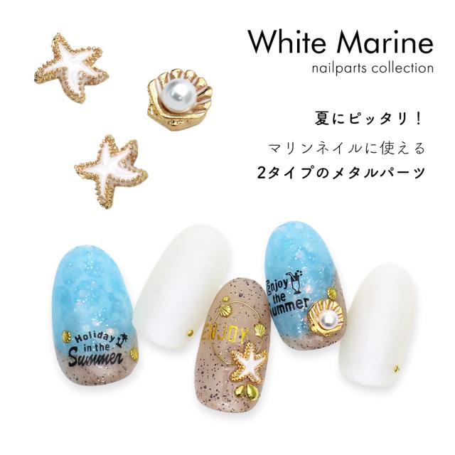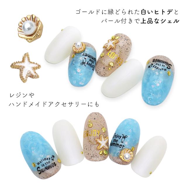 ネイルパーツ ホワイトマリンパーツ 全2種 [ヒトデ/シェル] 3個入り