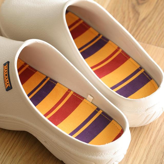 コーディネートのアクセントになってくれる、ポップでカラフルなカラーを揃えました。通年使用可能なクロッグタイプのサンダルです。