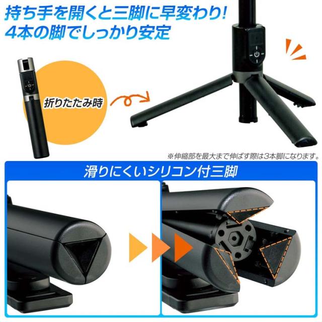 三脚と自撮り棒の機能が一つに!便利な2WAY三脚です。