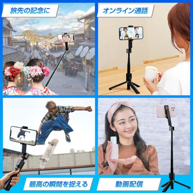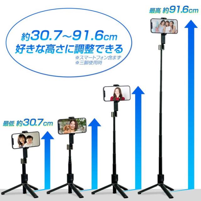 ●スマートフォンを固定できる三脚で、自撮り棒としても使用できます。