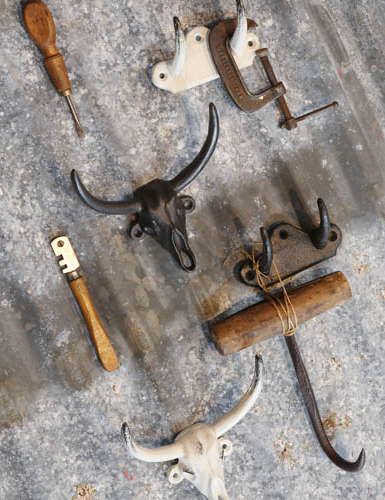 そのスカルをモチーフにしたアイアン製のフックです。角の部分がフックになっているデザインで、装飾要素と実用性を兼ね備えた、男前インテリアに最適なアイテム。