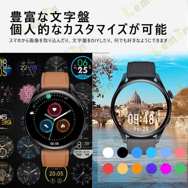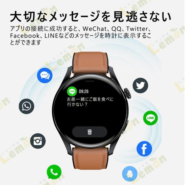 ・更に機能:天気予報、音楽制御、SMS通知、電話の着信通知、アラーム、GPS運動など。