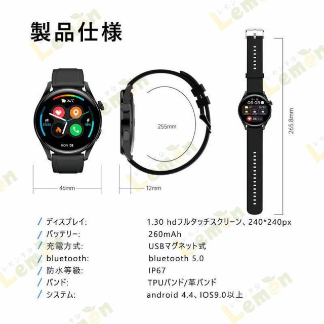・健康管理:体温監視、酸素、心拍計、活動量計、歩数計、座りがちの自動注意、睡眠モニター、運動モニター、スポーツ、カメラ操作、カロリー、睡眠の質と時間及び日常生活のさまざまなシーンで測定ができます。