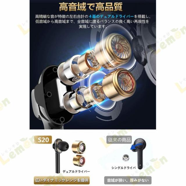 ブルートゥースイヤホン デュアルドライバー 高音質 ワイヤレス イヤホン 自動ペアリング ブルートゥース イヤホン 防水 マイク付き ハンズフリー通話