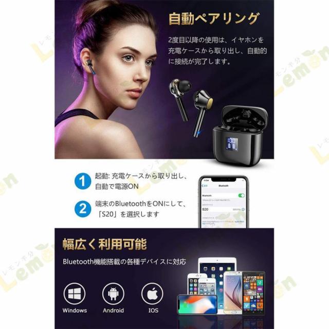 ♪♪【左右それぞれにBluetooth 5.0チップ搭載&簡単タッチ操作】従来のBluetoothイヤホンは左か右のどちらかにBluetoothチップが一つ搭載されている設計になっています。しかし、S20は両耳にチップを一つずつ搭載しました。これによって、それぞれのイヤホンが独立してデバイスと接続することになり、より安定したデータ通信が可能になりました。