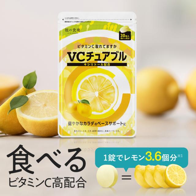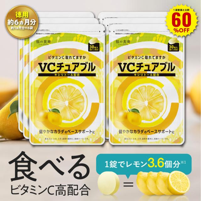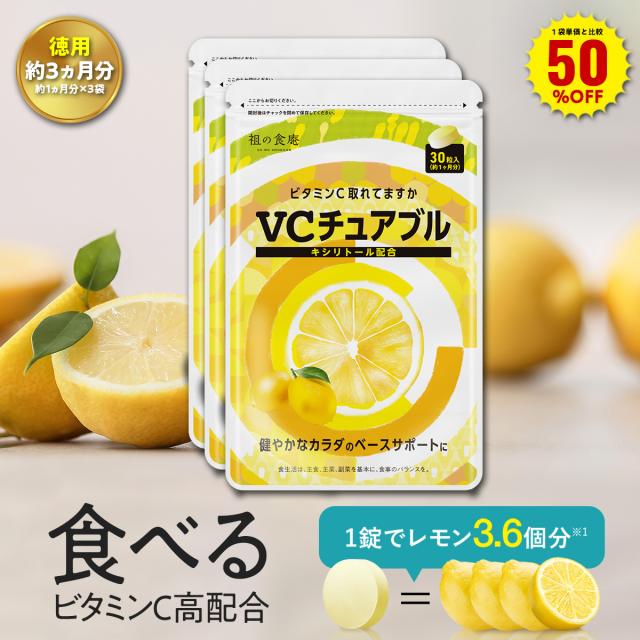 1袋単価比較で半額!【徳用/約3ヵ月分】噛んで食べる ビタミンC サプリ VCチュアブル錠 (約1ヵ月分×3袋) キシリトール配合 美肌 乾燥肌