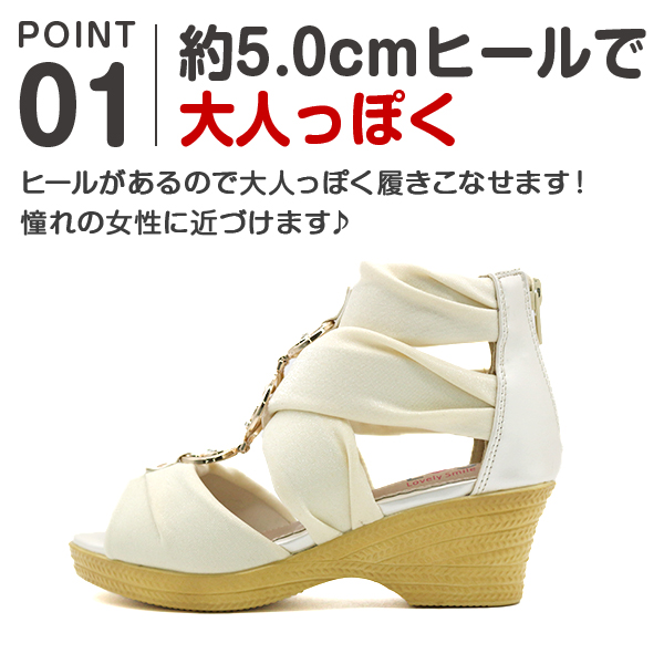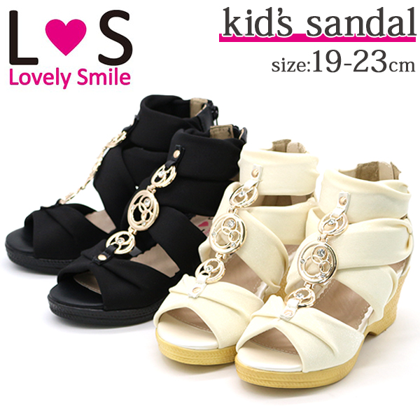 サンダル キッズ 子供 ジュニア 靴 女の子 黒 ブラック 白 ホワイト アイボリー かわいい おしゃれ キラキラ 大人っぽい ヒール 美脚 ファスナー 脱ぎ履き簡単 小学生 中学生 ラブリースマイル Lovely Smile LS8005