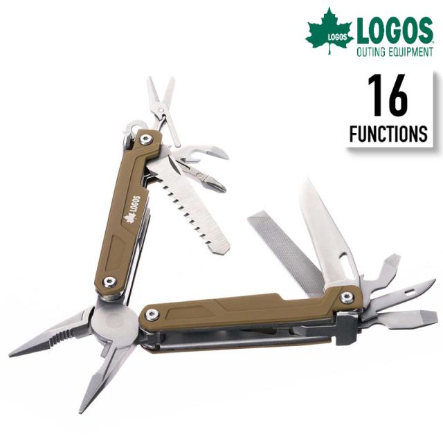 LOGOS/ロゴス PROマルチツール16 16種類のマルチ機能ツール ハサミ 栓抜き コルク抜き プラスマイナスドライバー ワイヤーカッター 5口径レンチ 六角ボルト・ナット対応 災害時やキャンプ 釣などアウトドア時にあると便利 ベルトループ付専用ケース