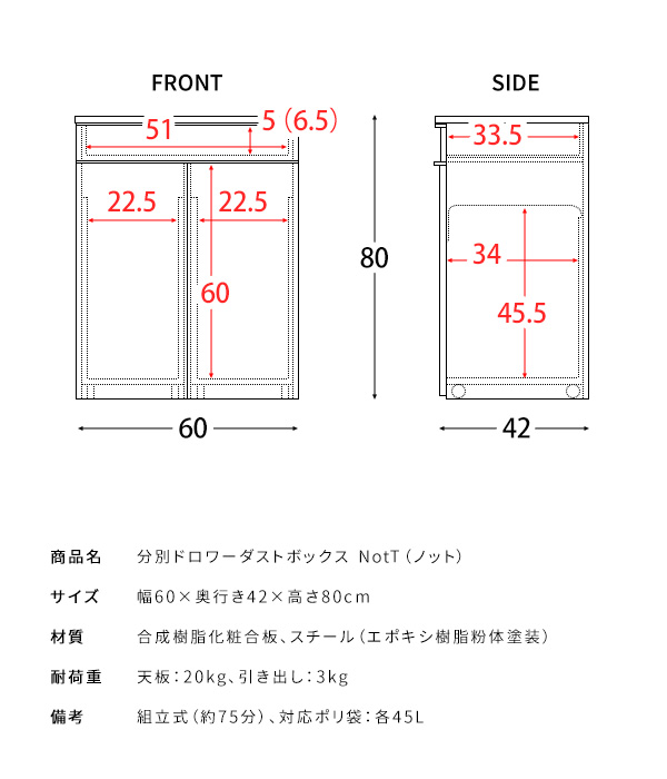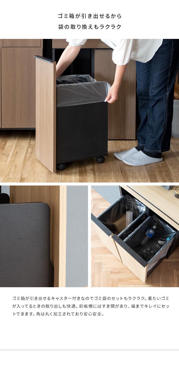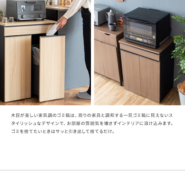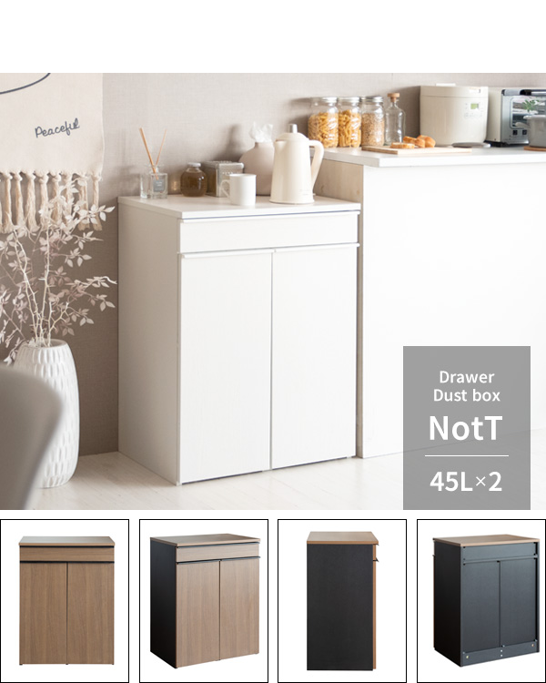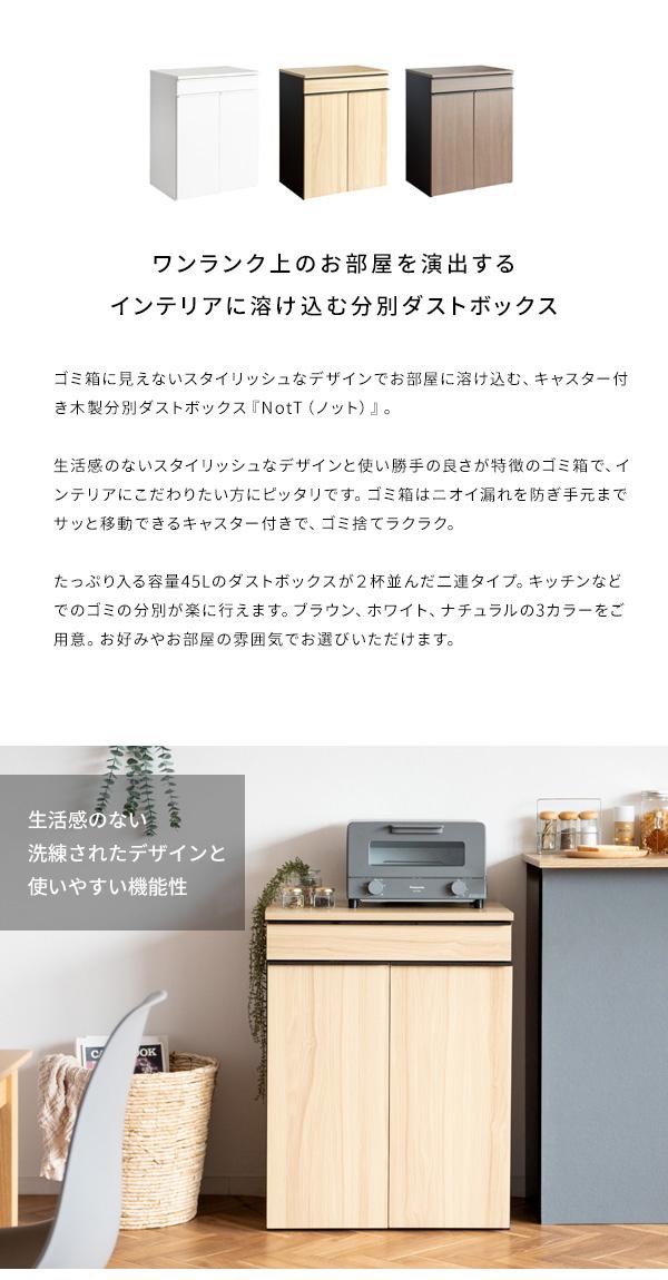 ゴミ箱 木製 分別ドロワーダストボックス NotT ノット DB-F2200 シンプル 取っ手付き 2分別 フラット天板 キャスター付き 木目調 収納引出し 容量45L キッチン