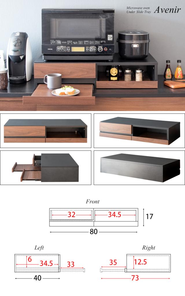 レンジラック シンプル レンジ下トレー Avenir アベニール TY-003 レンジ下収納 レンジ台 スライドトレー 収納ラック 引出し付き 省スペース 汚れにくい 木目調