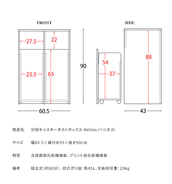 ゴミ箱 分別キャスター ダストボックス おしゃれ 北欧風 キャスター付き 大型 キッチン レンジ台 調味料 シンプル ゴミ袋が見えない Helios(ヘリオス) DB-F2100