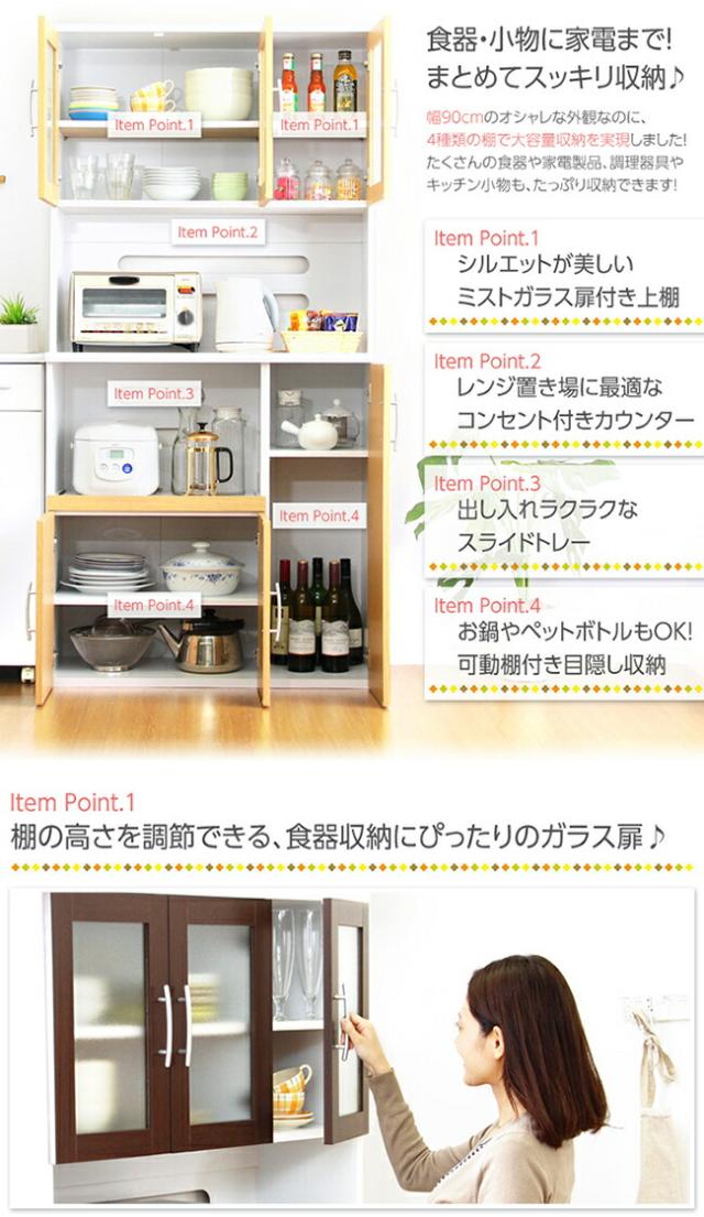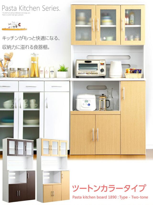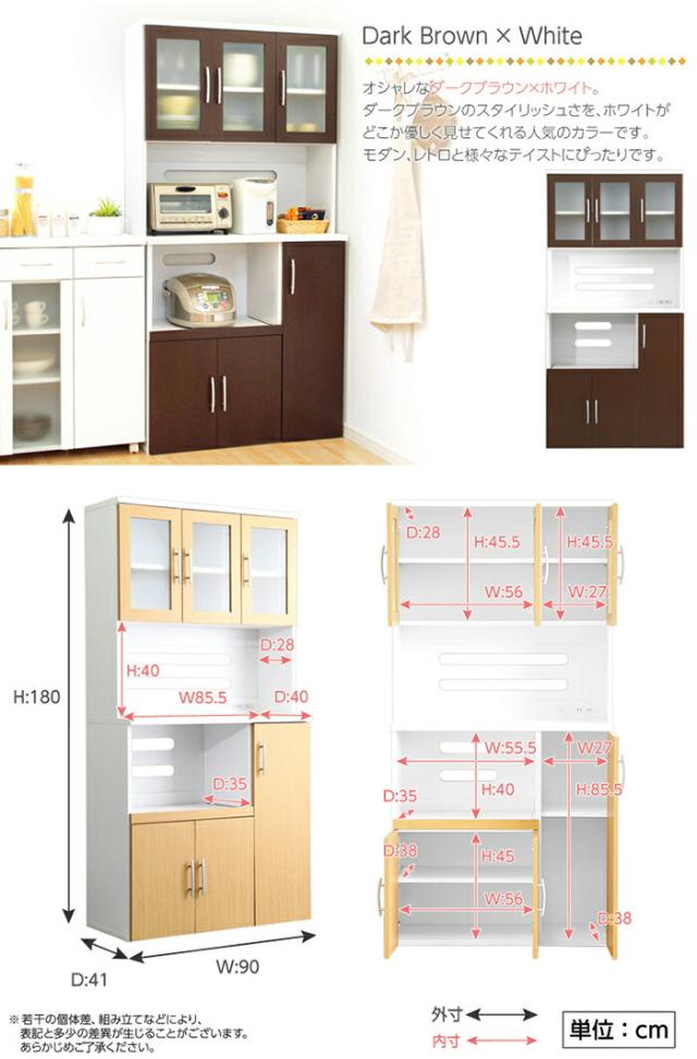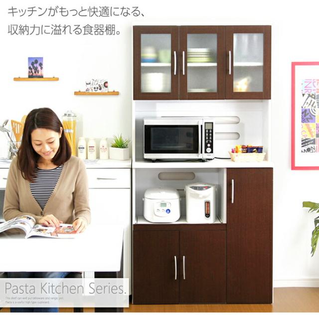 PAS 食器棚 幅 90cm ブラウン/全3色 幅90 奥行き41 高さ180cm ハイカウンター レンジ台 組み立て商品 キッチン収納 カップボード キッチンボード おしゃれ ダイニングボード 台所収納