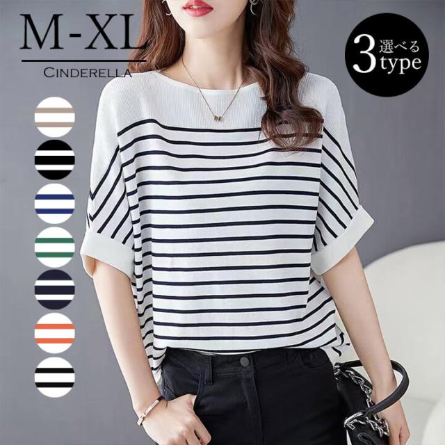 トップス ニット ボーダー シンプル レディース カジュアル ゆったり 袖あり 長袖 七分袖 半袖 体型カバー 春 夏 秋 ロング丈 ミディアム Uネック ボートネック 抜け感 こなれ感 女性 大人 大人カジュアル オフィス オフィスカジュアル 大人可愛い きれいめ 上品