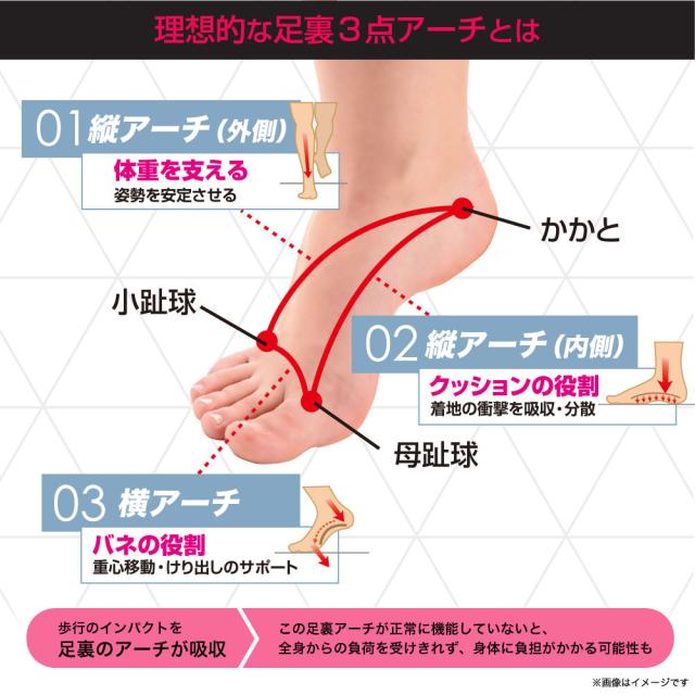 着用するだけで立体的な足裏3点アーチをつくる足袋構造