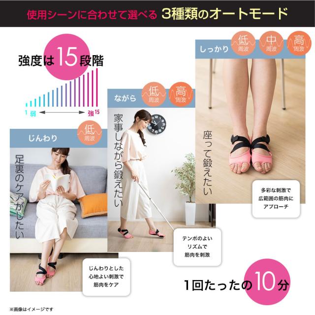高周波・中周波・低周波の多彩な刺激で足裏の筋肉を鍛える