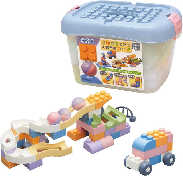 大きなパーツで握りやすく組みやすいので初めてのブロック遊びにおすすめ。