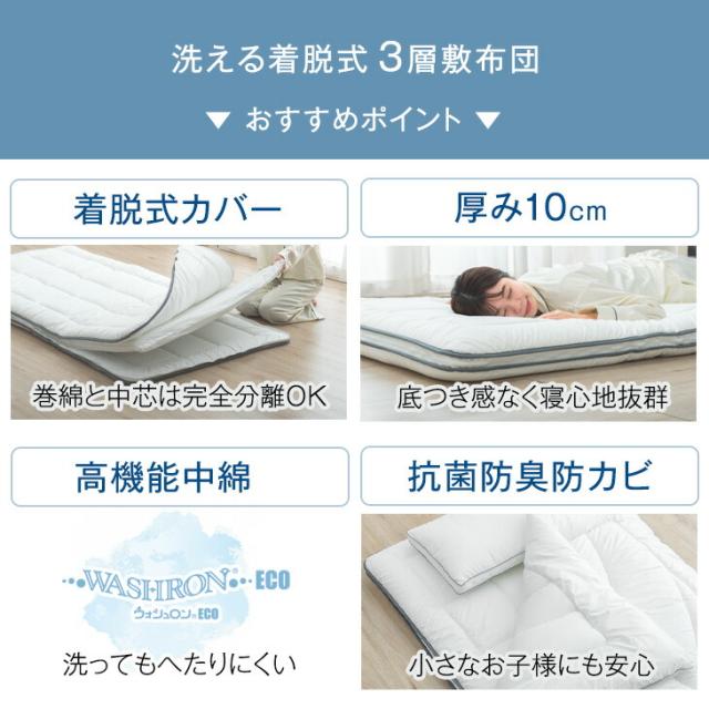 【正午〜P5%還元】 敷布団 ダブル 三層 洗える ダブルサイズ 完全分割式 テイジン 敷き布団 敷布団 ウォッシャブル 清潔 おすすめ 着脱式 固綿入り 敷布団 マットレス 軽量 極厚 軽い 布団 洗濯 来客用 敷布団 敷き布団