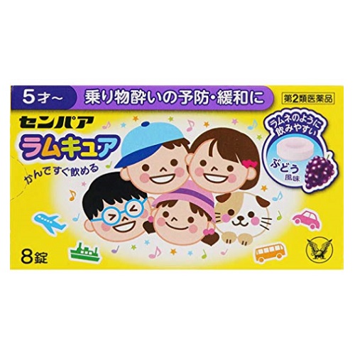 | 商品説明 | ●お子様が飲みやすい乗り物酔い薬 ●センパア ラムキュアは、ラムネのようにかんで飲めるチュアブルタイプの乗り物酔い薬です。 ●水なしで飲めるので外出先でも便利です。 ●5才から服用可能、お子さまに人気のぶどう風味です。 |