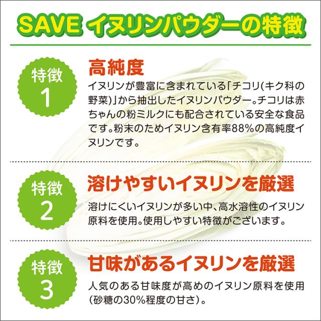 超溶 高水溶性 イヌリン SAVE 食の極 高純度88% 天然チコリ由来 イヌリン 粉末 パウダー 水溶性食物繊維 腸活 計量スプーン付 300g