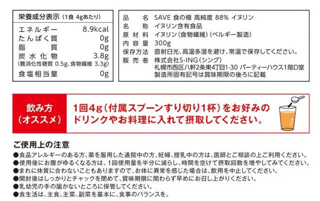 【品名】SAVE 食の極 高純度 88% イヌリン 300g