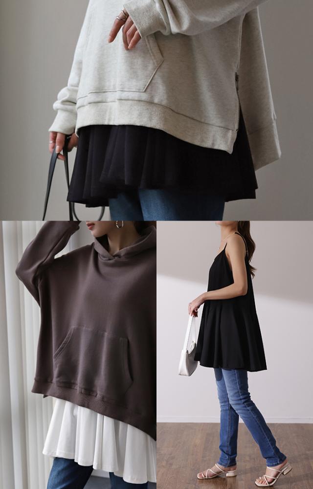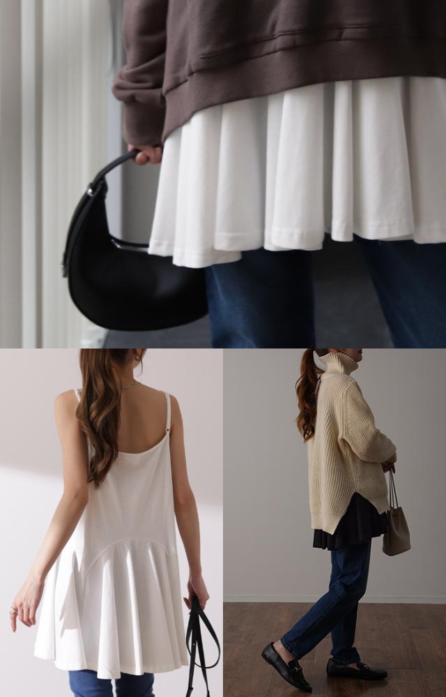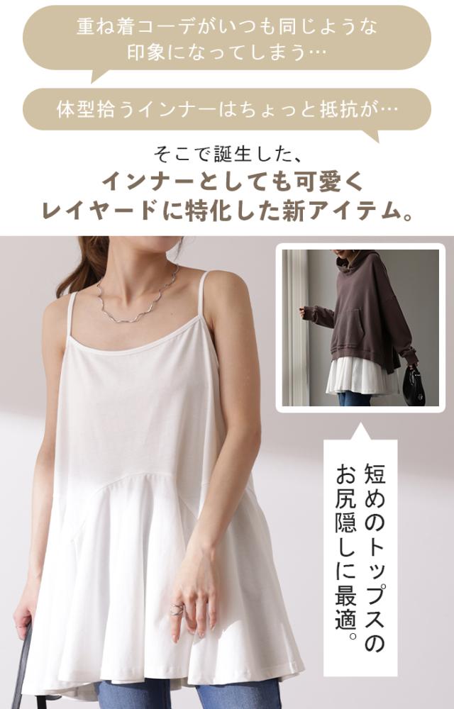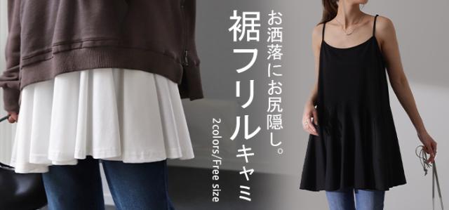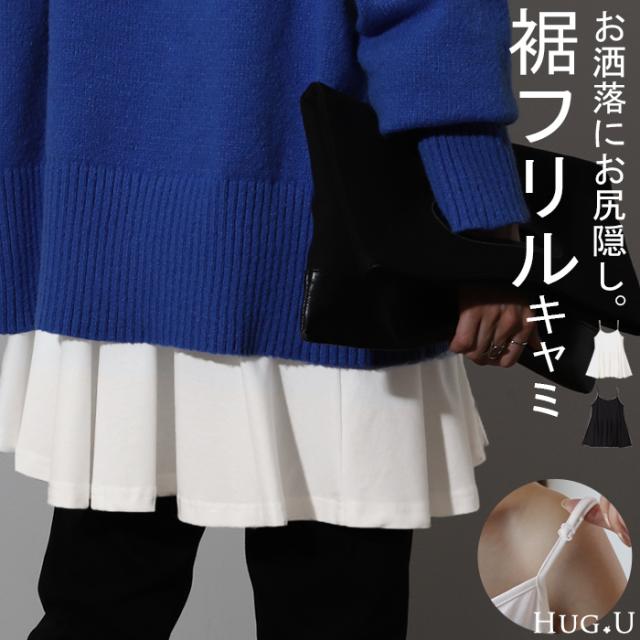 長さ 調節可能。お尻を隠す「 裾フリル キャミ 」インナー 一部1月中旬入荷 ペプラム フリル キャミソール レイヤード 裾 ロング お尻が隠れる レイヤードキャミソール 重ね着 トップス 無地 バックフリル 体型カバー 大きいサイズ 付け裾 黒 白 冬 秋 HUG.U 秋新作