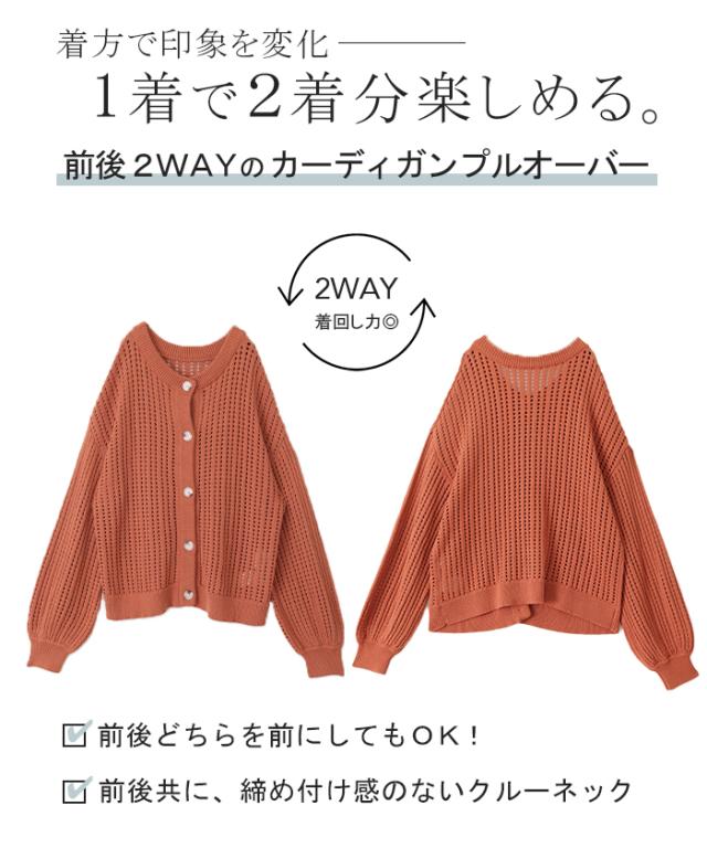 前後2WAYデザインなのでカーディガンでもプルオーバーとしても着用可能。