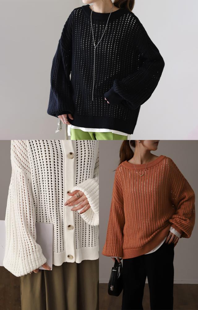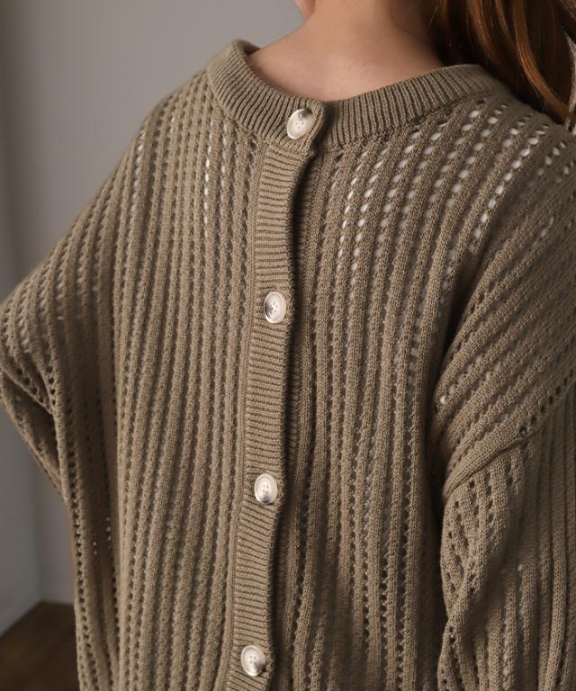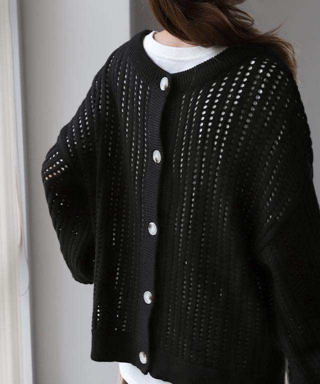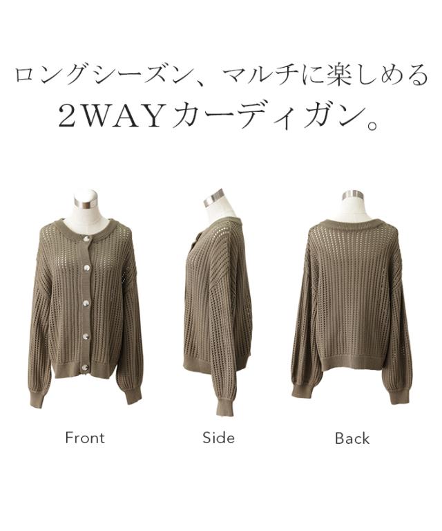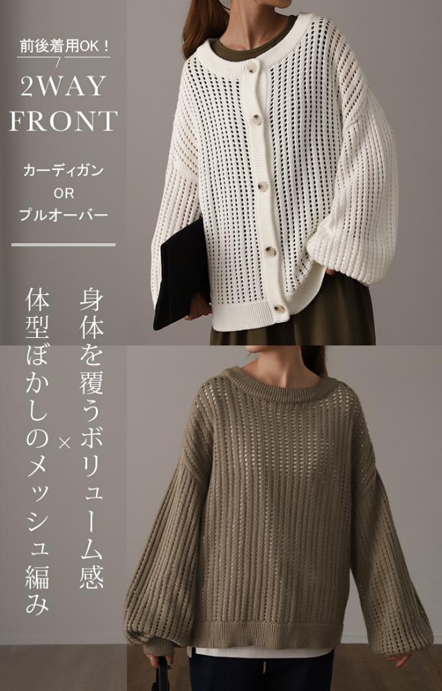 体型カバー ゆる メッシュ 前後 2way ニット プルオーバー カーディガン 透かし編み サマーニット ニットカーディガン レディース セーター トップス 長袖 ニットカーデ リブ カーデ お尻が隠れる 大きいサイズ ボタン 冬 秋 HUG.U 秋新作