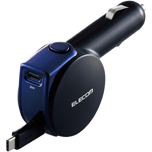 ●USB Type-C(TM)(USB-C(TM))ポートと、USB Type-C(TM)(USB-C(TM))コネクターを搭載し、合計最大35Wでスマートフォンなどの端末を2台同時に充電できる車載充電器です。USB Type-C(TM)(USB-C(TM))ポートはUSB Power Delivery規格に対応し、20Wで高速充電が可能です。USB Type-C(TM)(USB-C(TM))コネクターは15Wで充電でき、ケーブル部分は約90cmの巻取り式リールタイプで、取り回しがしやすく、すっきりと収納できます。